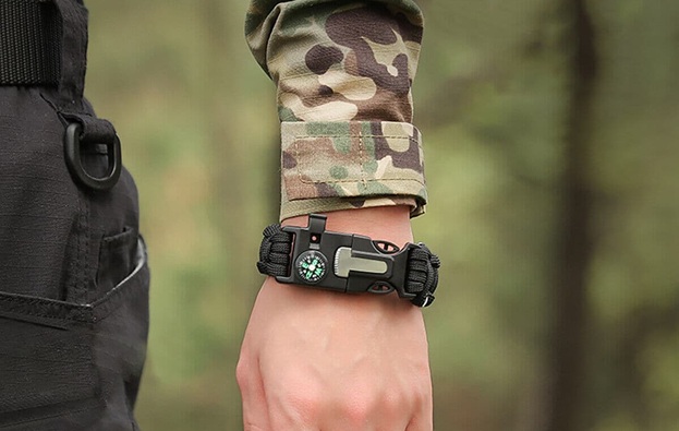 In an emergency, it unfolds into a toolset for navigation, signaling, fire-starting or basic trail needs. On the other hand, the EDC Prepper Bracelet includes an LED light, cutting blade, compass, firestarter, a fishing kit, handcuff key and more. It even has an internal core with essentials like fishing line, tape, hooks and water purification tablets.